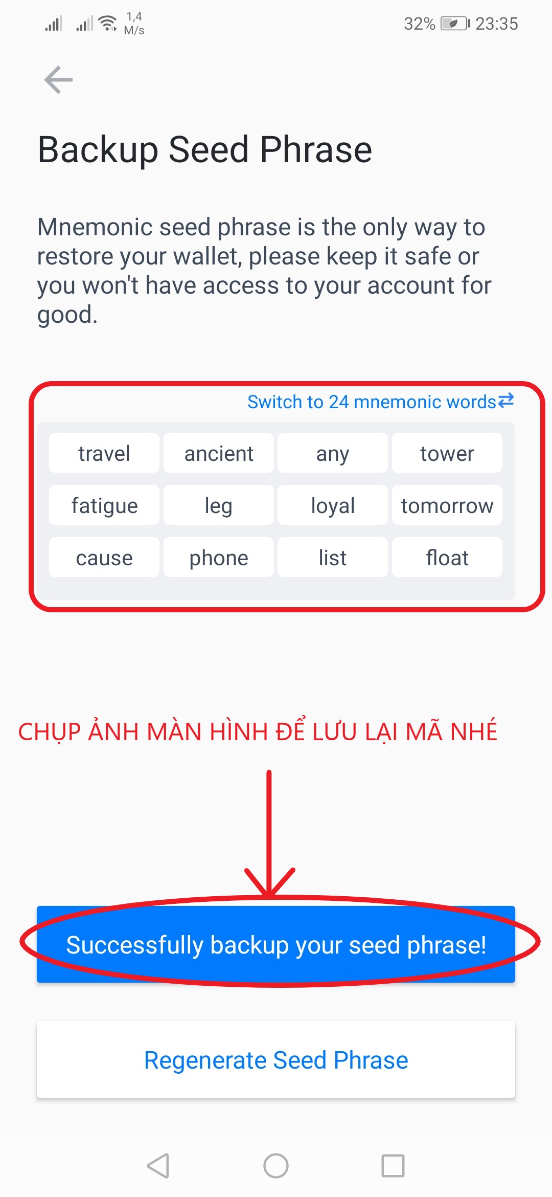 Bước này lưu ý phải chụp hình ảnh dãy code này lại để làm bước tiếp theo và lấy lại tài khoản nếu bị quên.